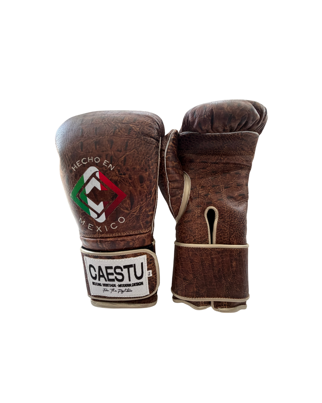 In Bespoke Crocodile Print, with the Caestu Hecho En Mexico logo and wrist branding.